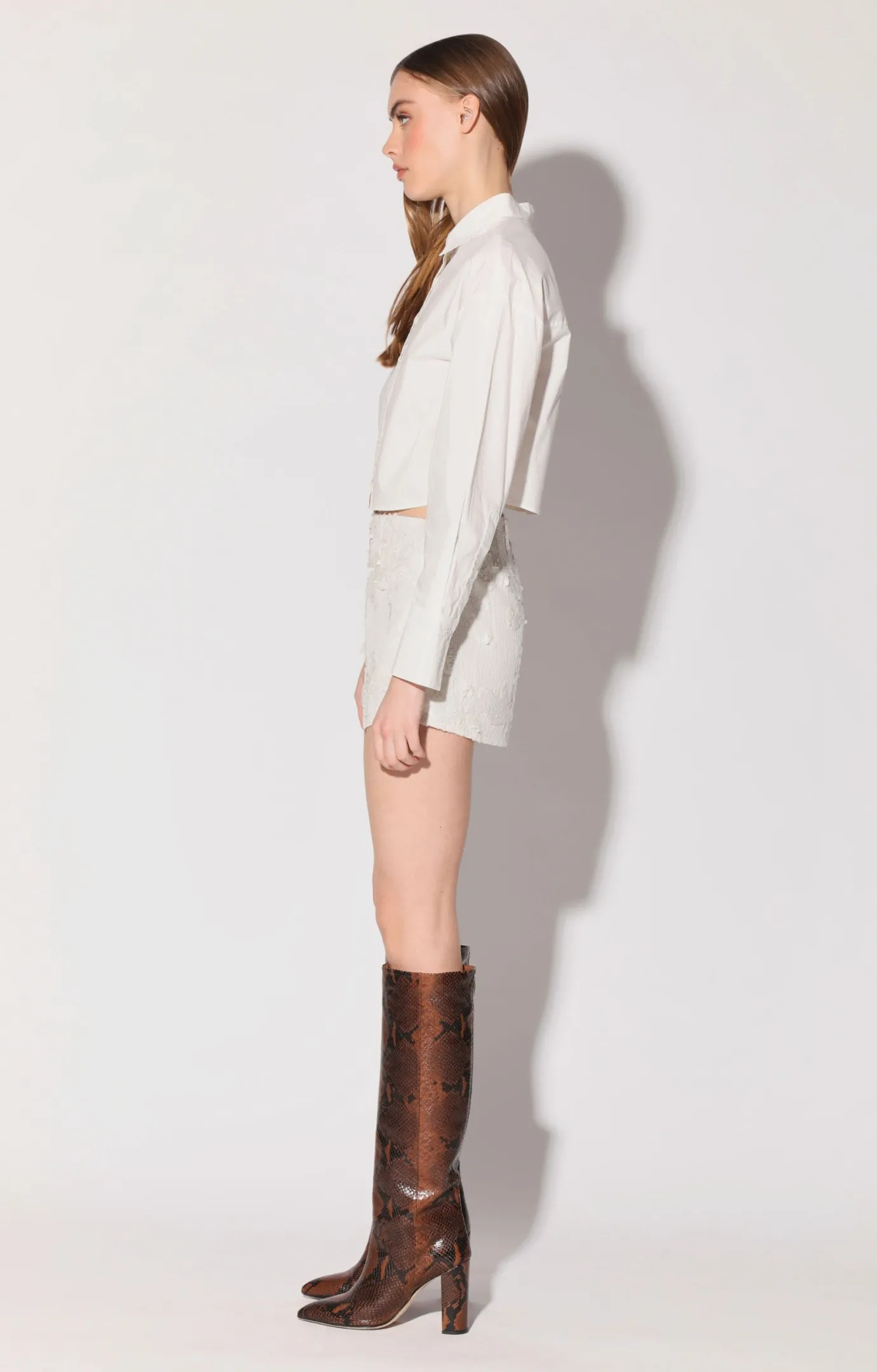 The Ashlee Skirt showcases our elegant sequin for a fresh mini style. Pair it with the Audrine Top for an eye catching set look