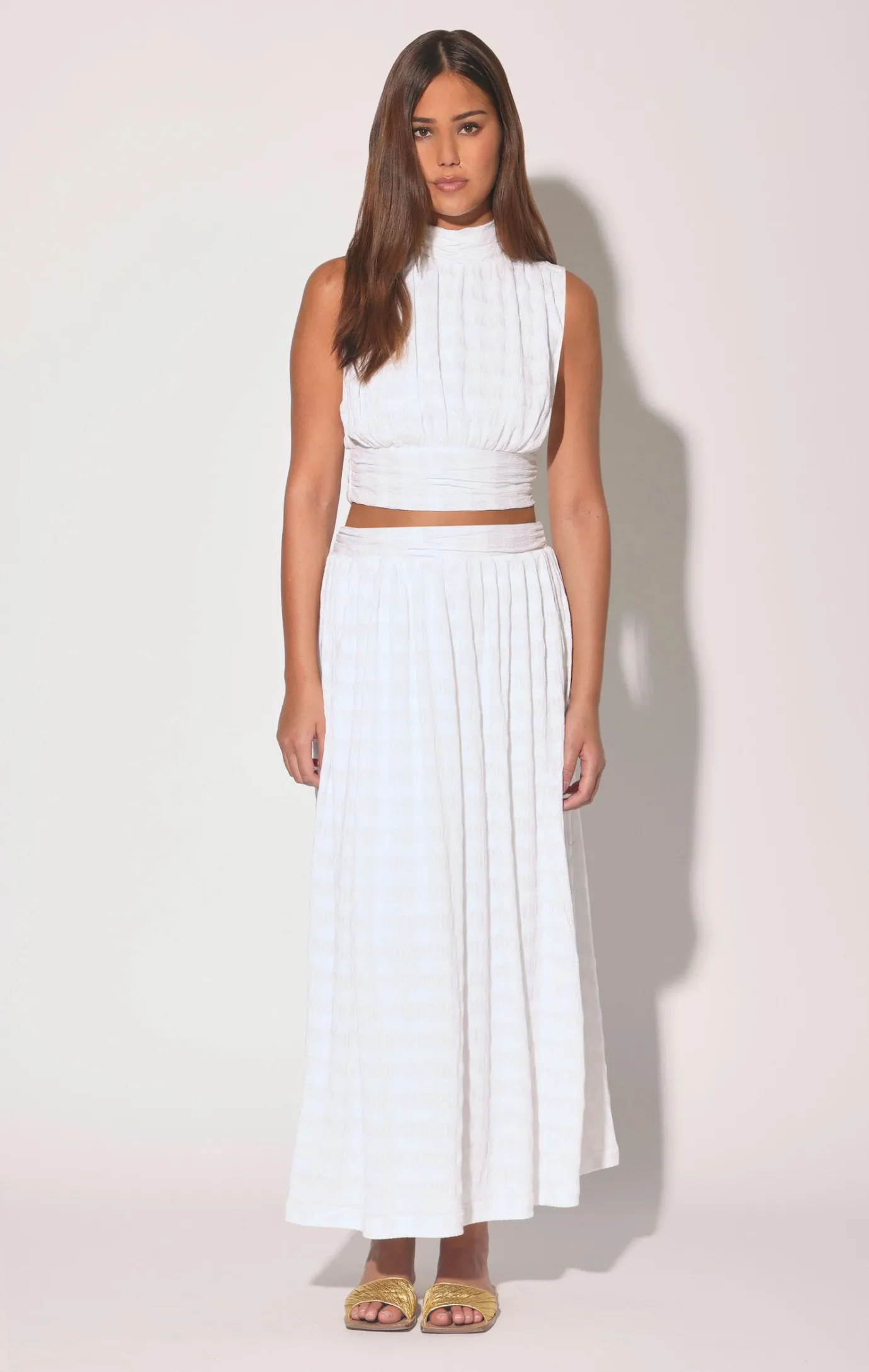 The Audrina Skirt is a full and fabulous maxi style. With flattering shirring detail, it looks even better when paired with the Asha Top