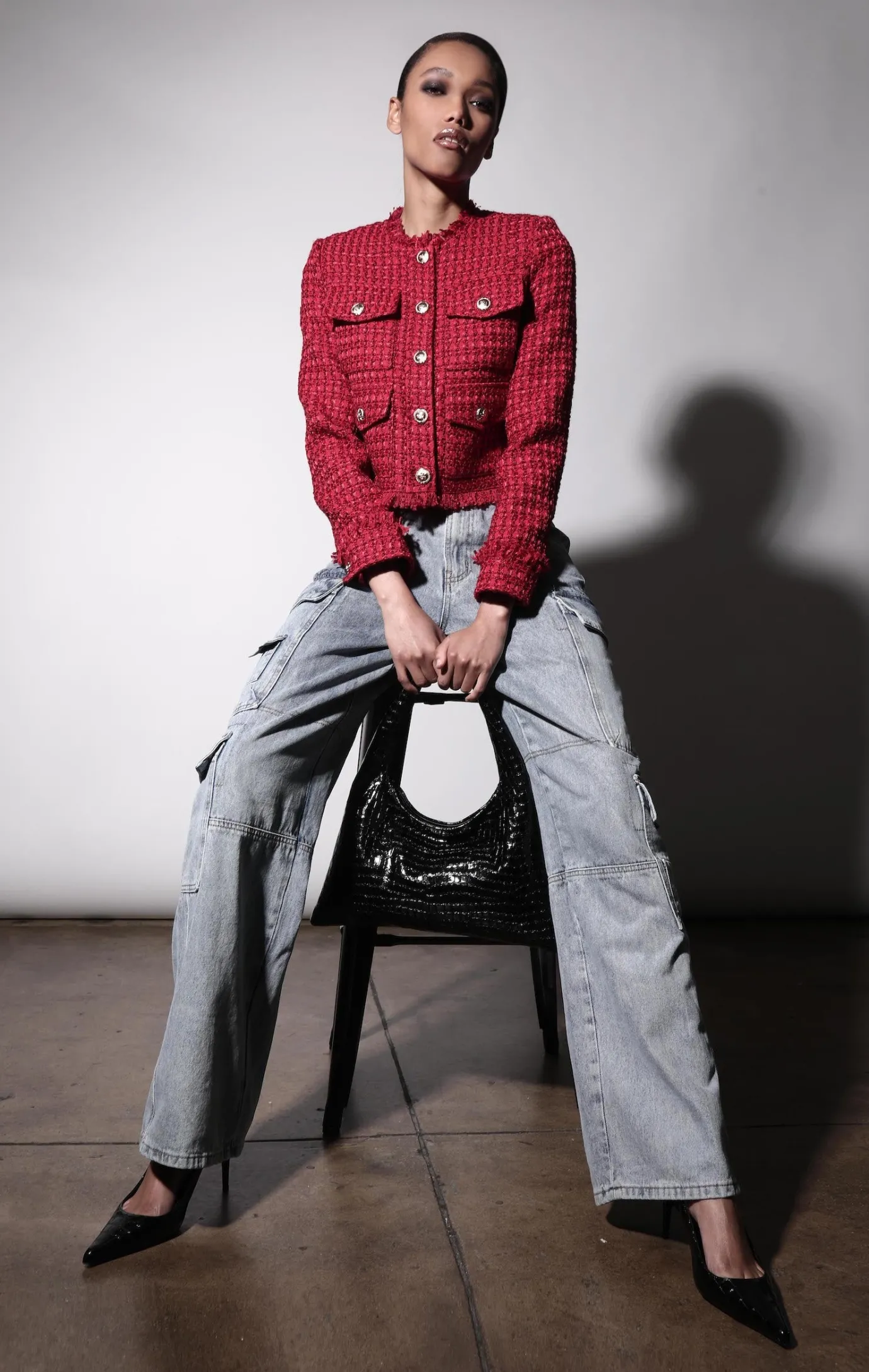 The Bennet Jacket in our beautiful tweed fabric, features front pocket details with engraved buttons. It can dress up your jeans or be worn as a matching look with the Bridget Dress