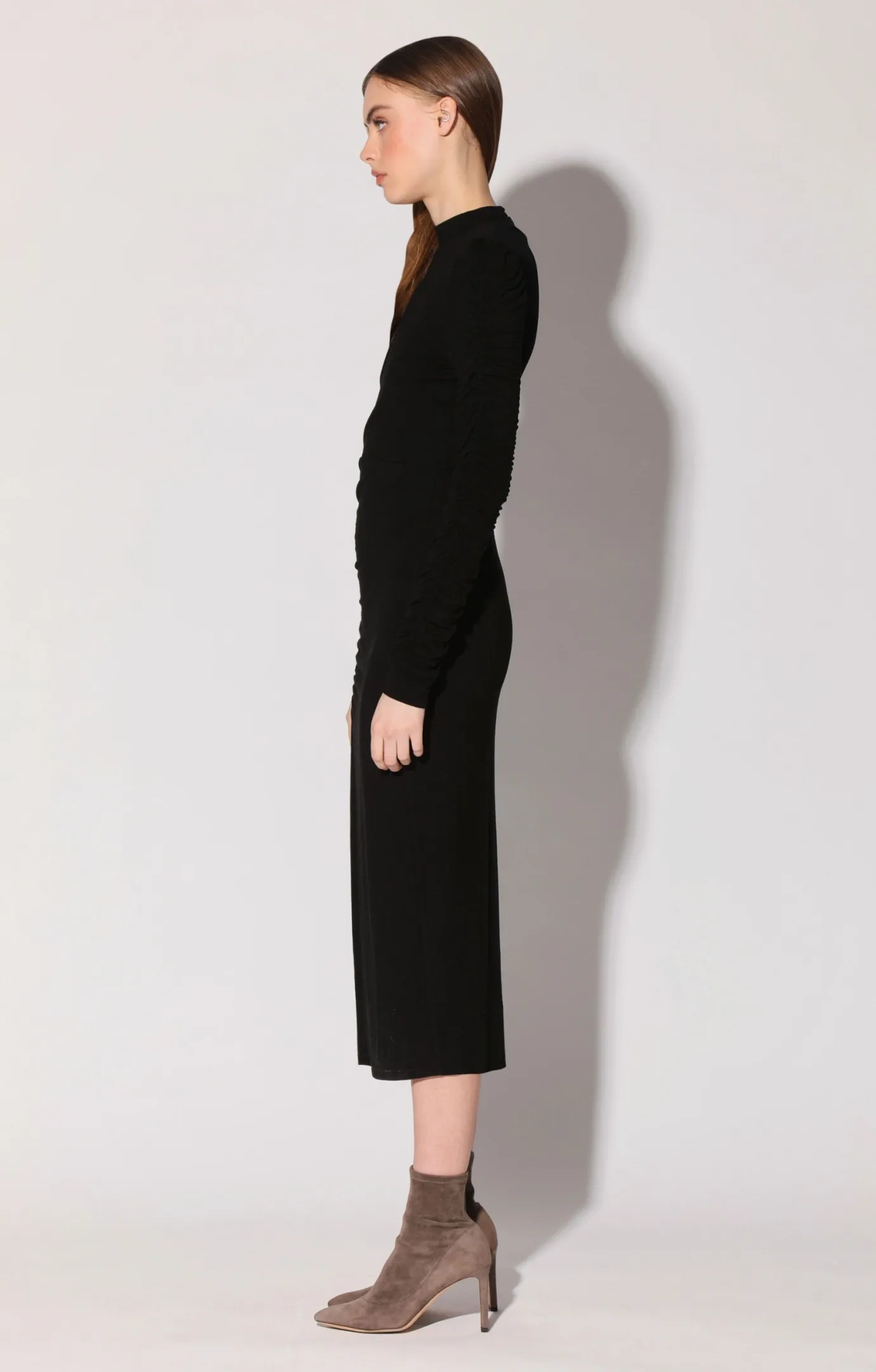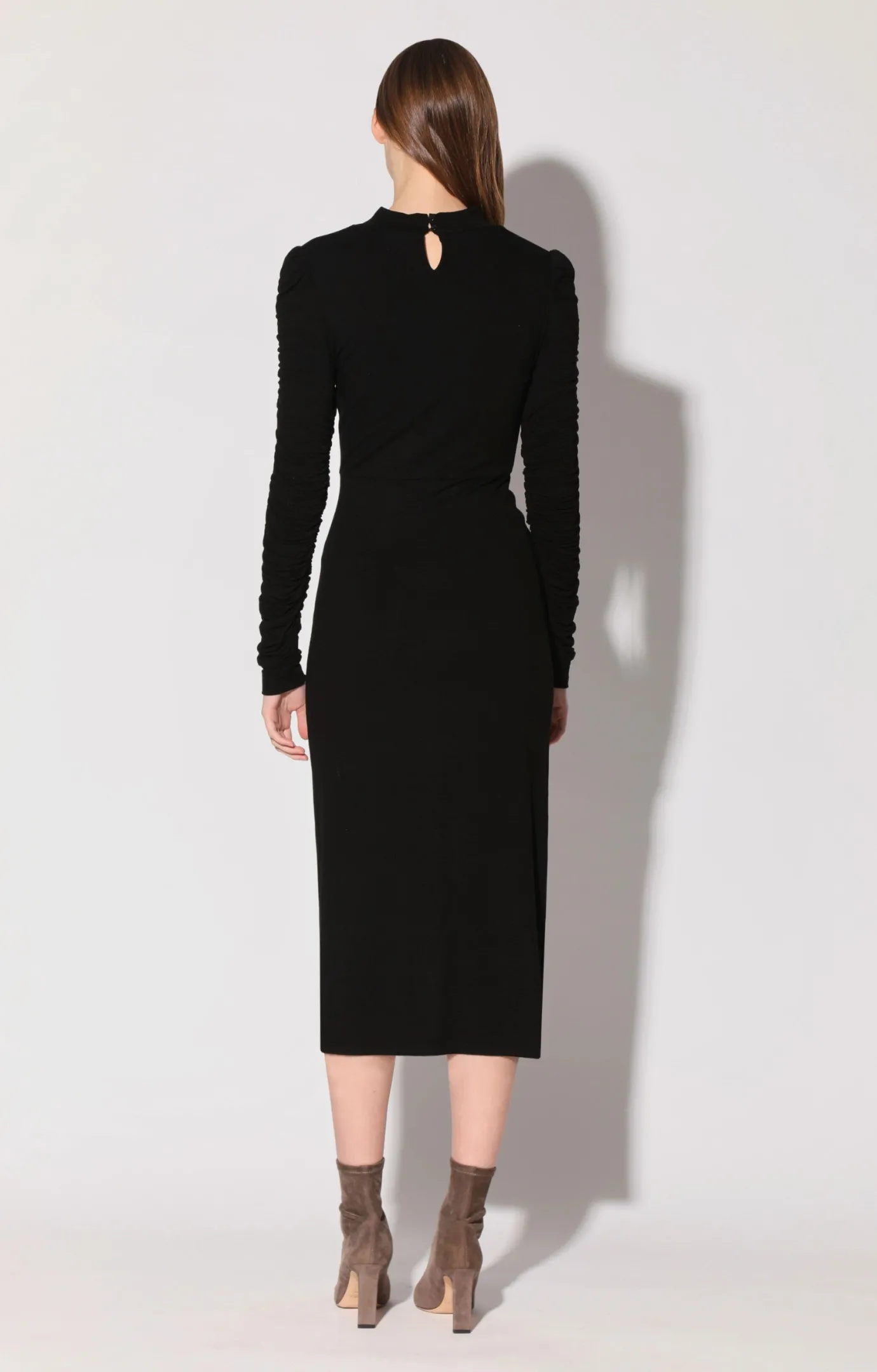 Sophisticated and sultry, the Connie Dress has an elegant mock neck and front slit detail.. In our drapey knit fabric, it makes getting ready and looking fabuloius quick and effortless