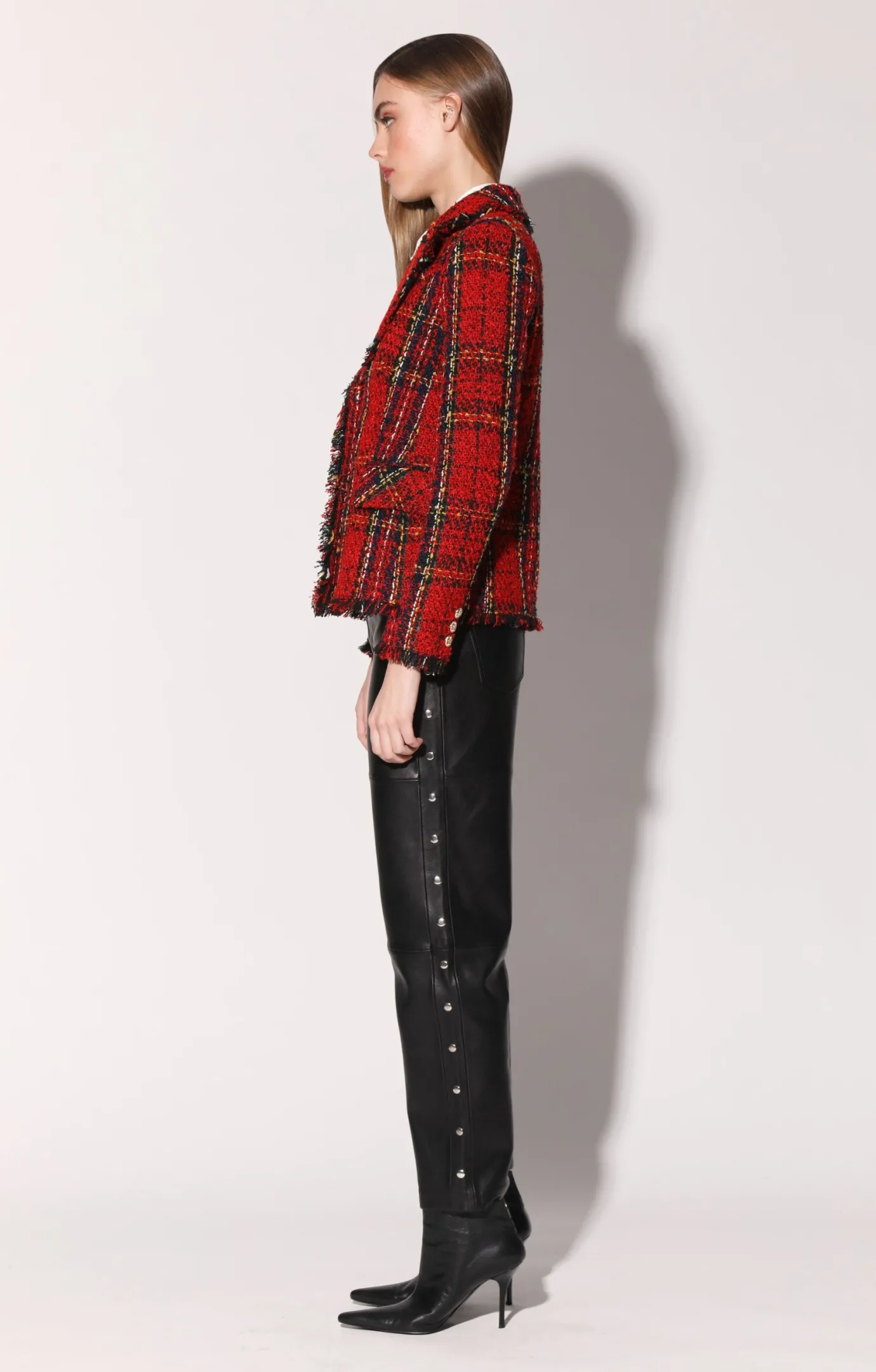 The Damon Blazer is an tailored fit longline jacket in our stylish tweed fabric with fringe trim. Throw it over a mini dress for a sophisticated look