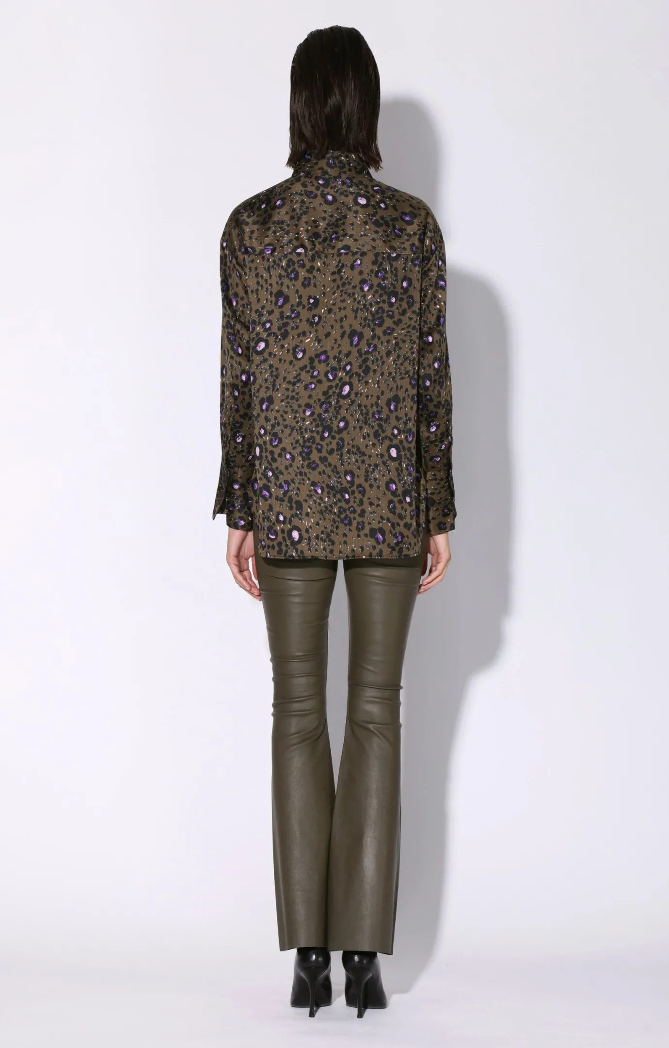 Refresh your collar button down style with the Delisse Top. This printed blouse features a slight oversize fit, shirtail hem, and elongated cuffs in our lush satin fabric