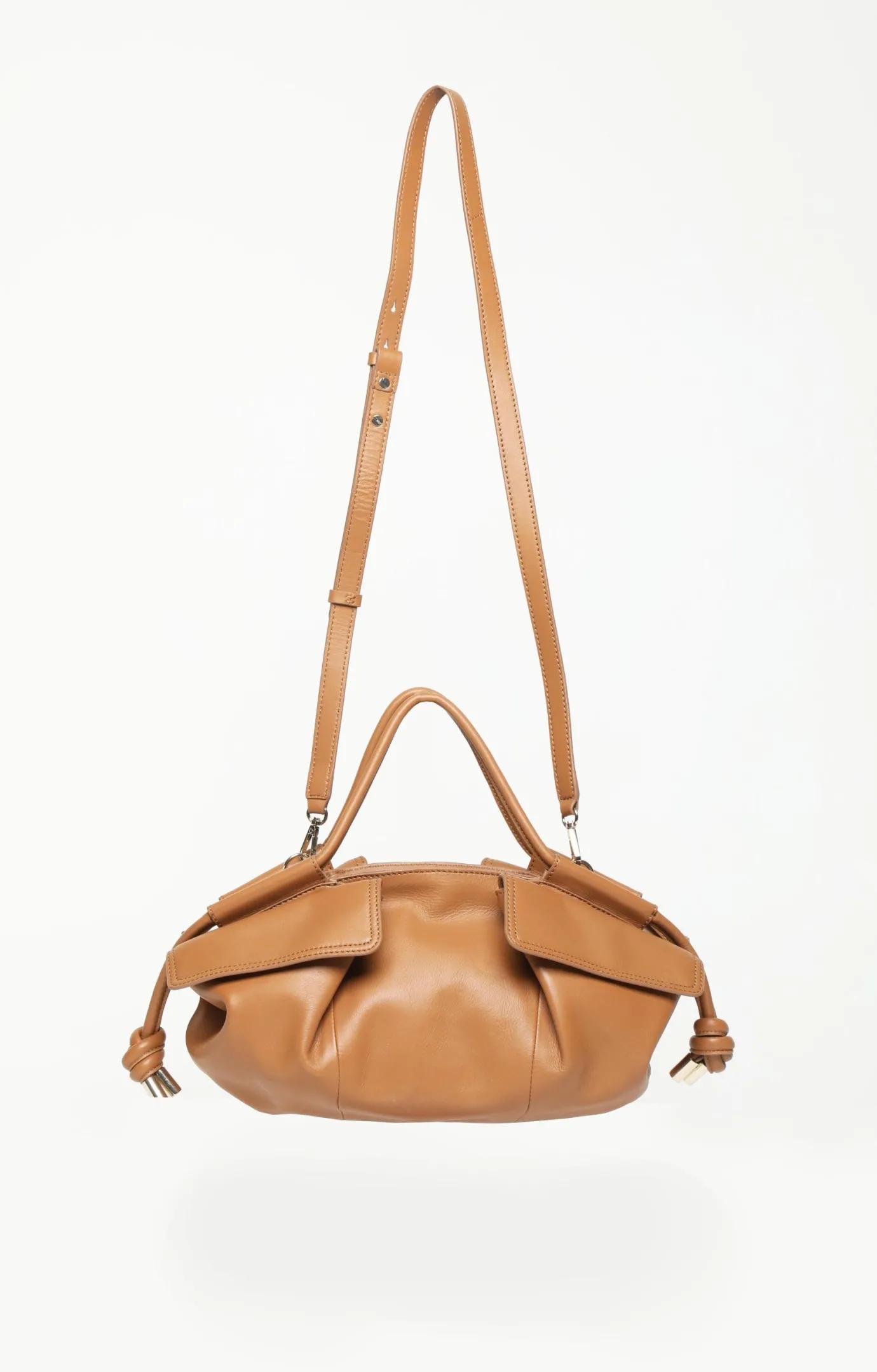 The Easton Satchel features cargo pockets with magnetic closures that are applied to a soft top handle cross body silhouette. In our supple leather with tubular knotted details, this utility inspired bag is stylish for everyday