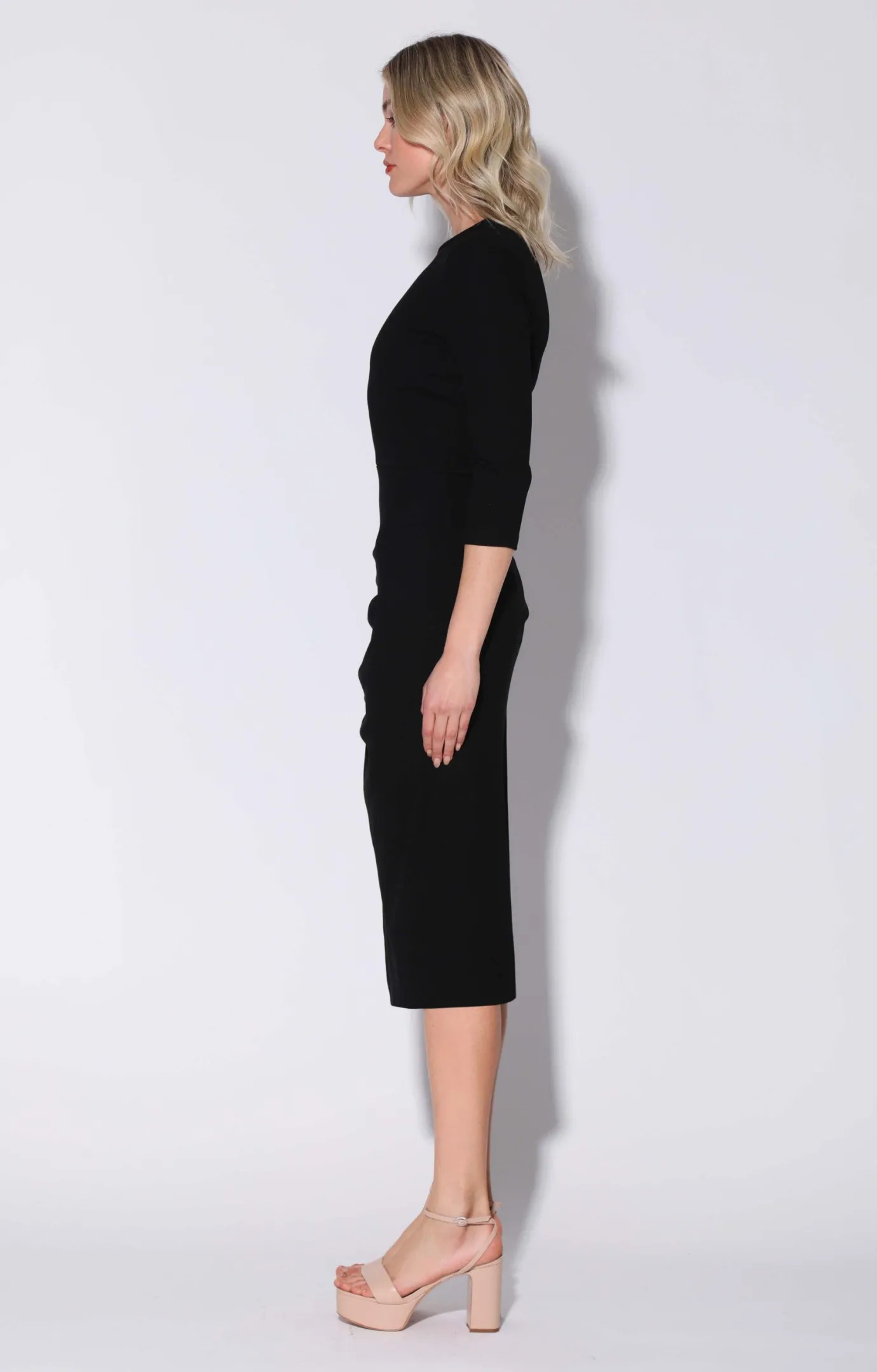 Sophisticated and sleek, the Kalani Dress is ready for the night! The cut out detail and slit on wearer’s right add just the right amount of edge