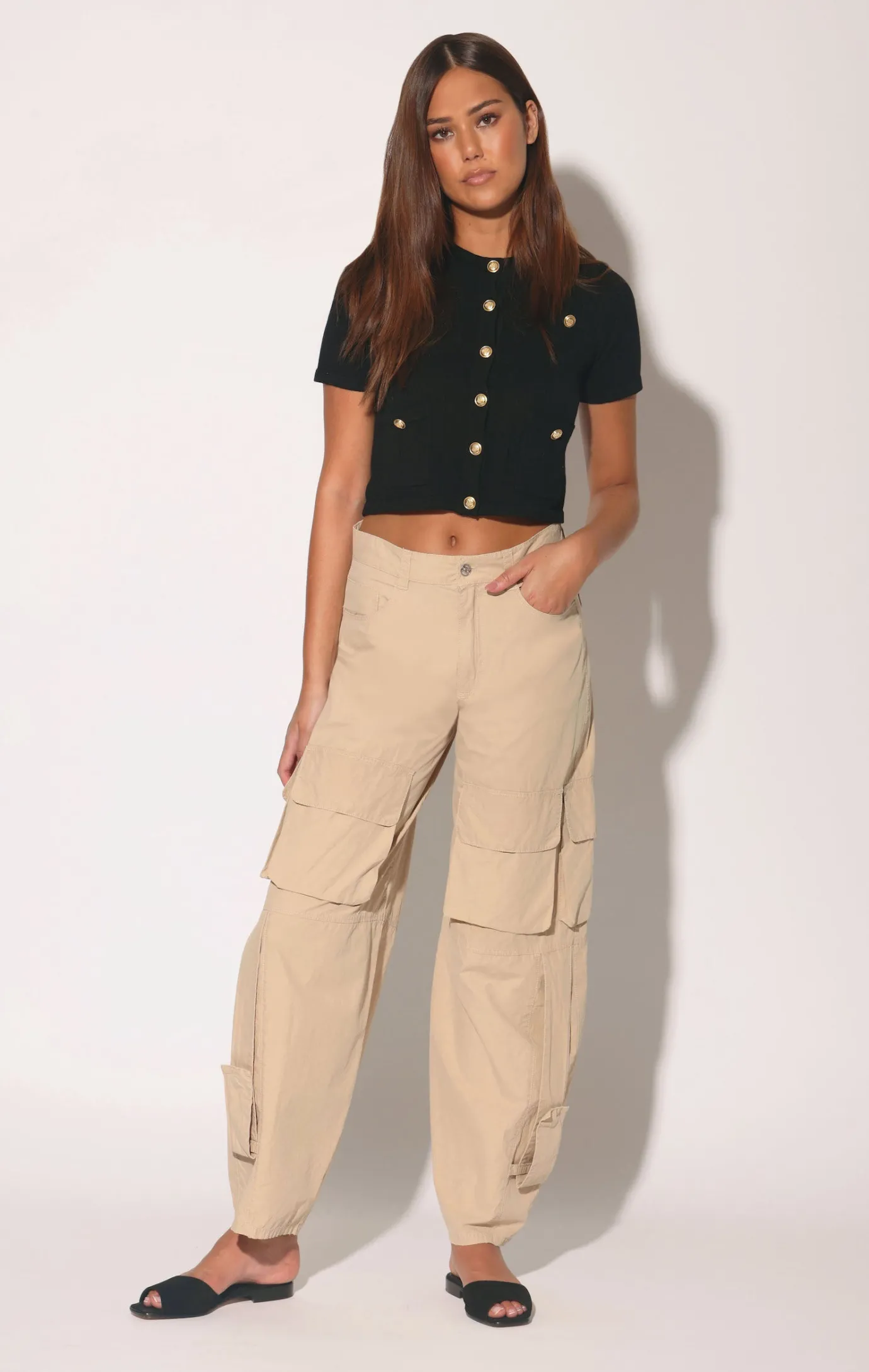 Upgrade your casual look with the Louise Cardigan. This short sleeve style features faux welt pockets, patch pockets, and engraved gold buttons