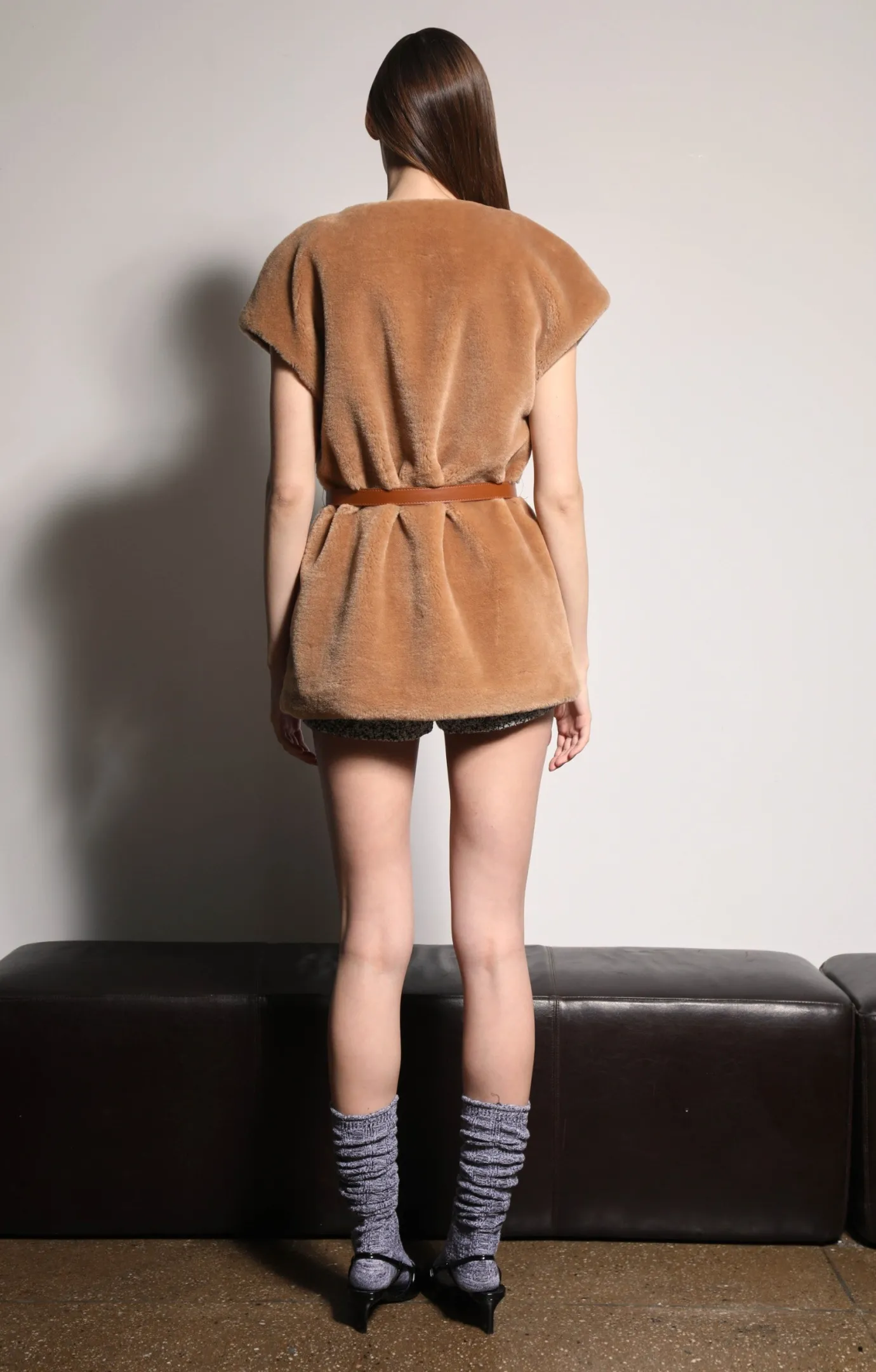 The Maryanne Vest is an elegant faux fur look. With a belted waist and side pockets, you’ll want to wear it over everything