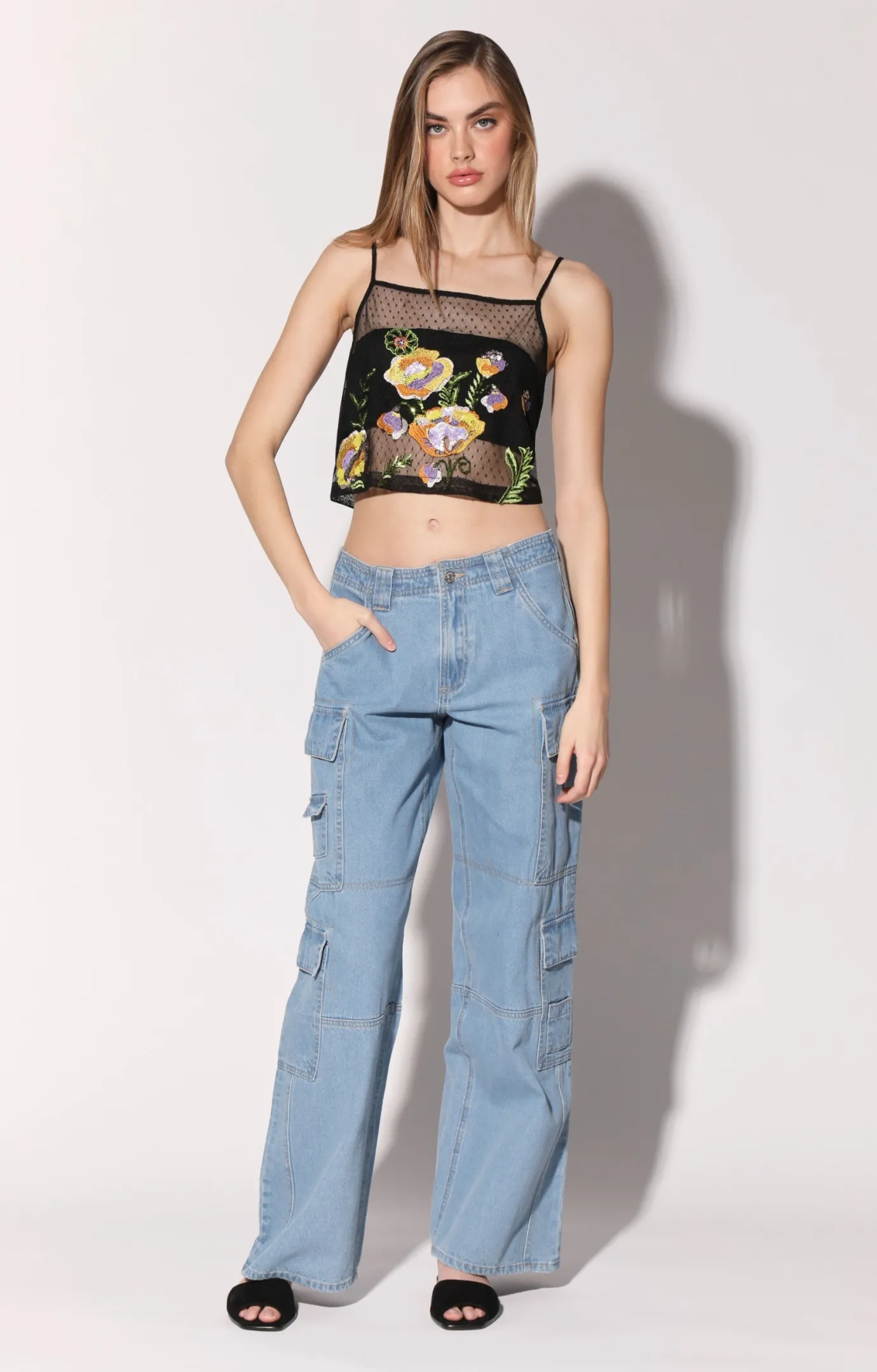 The Paulina Top is a must have strappy crop top for every occasion. In our luxe embroidery detail, it can be dressed up with a skirt and blazer, or casual with slouchy jeans