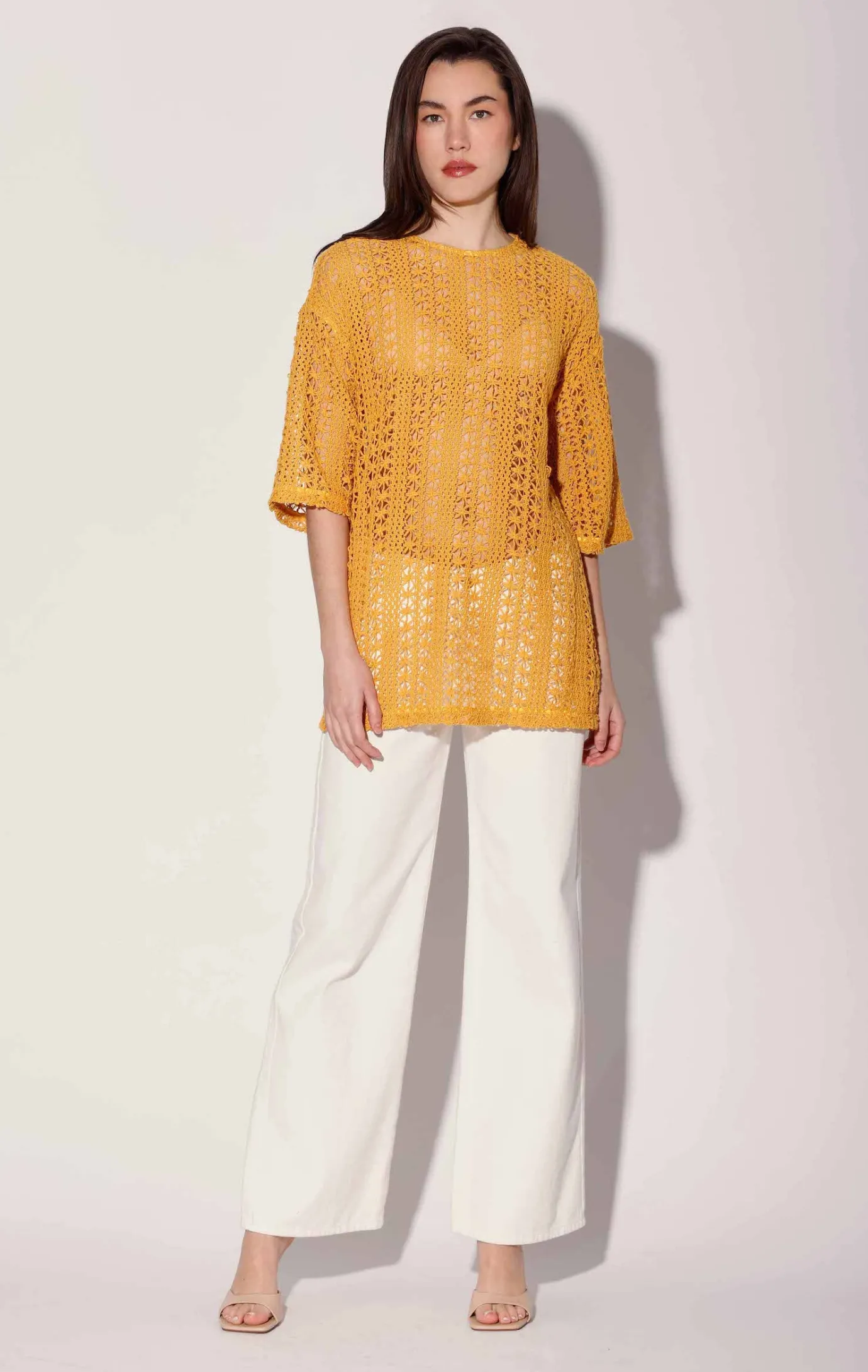 The Peyton Tunic is an easy fit silhouette that features an eye catching crochet pattern. Dress it up with heels or go more casual with flat sandals