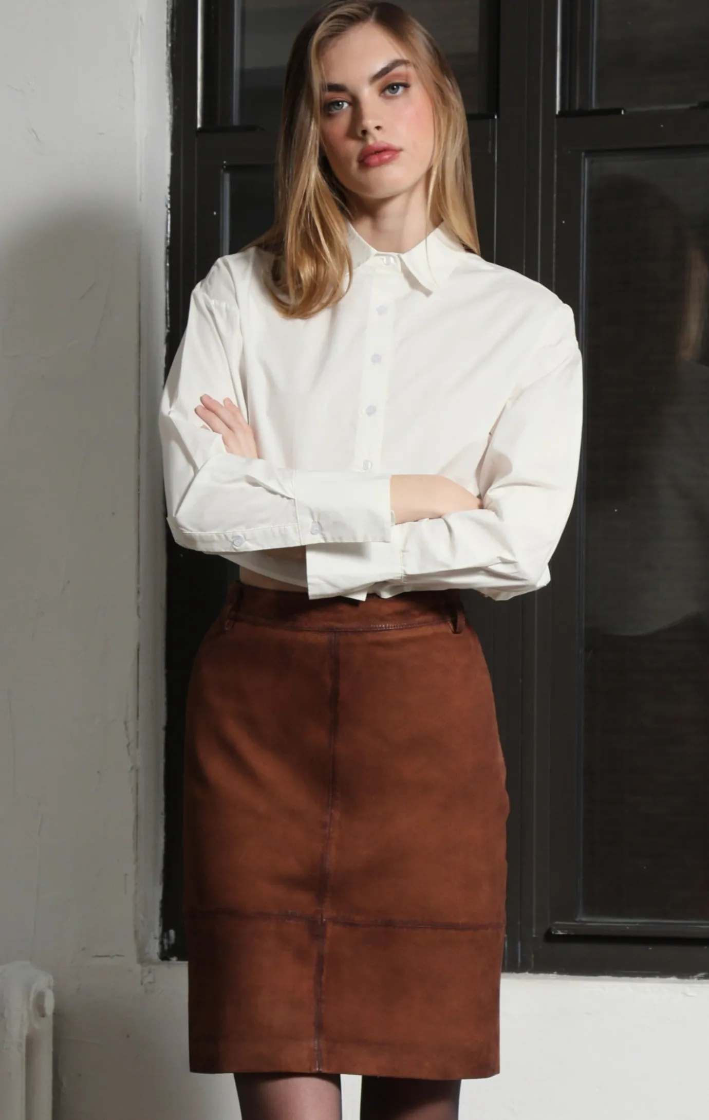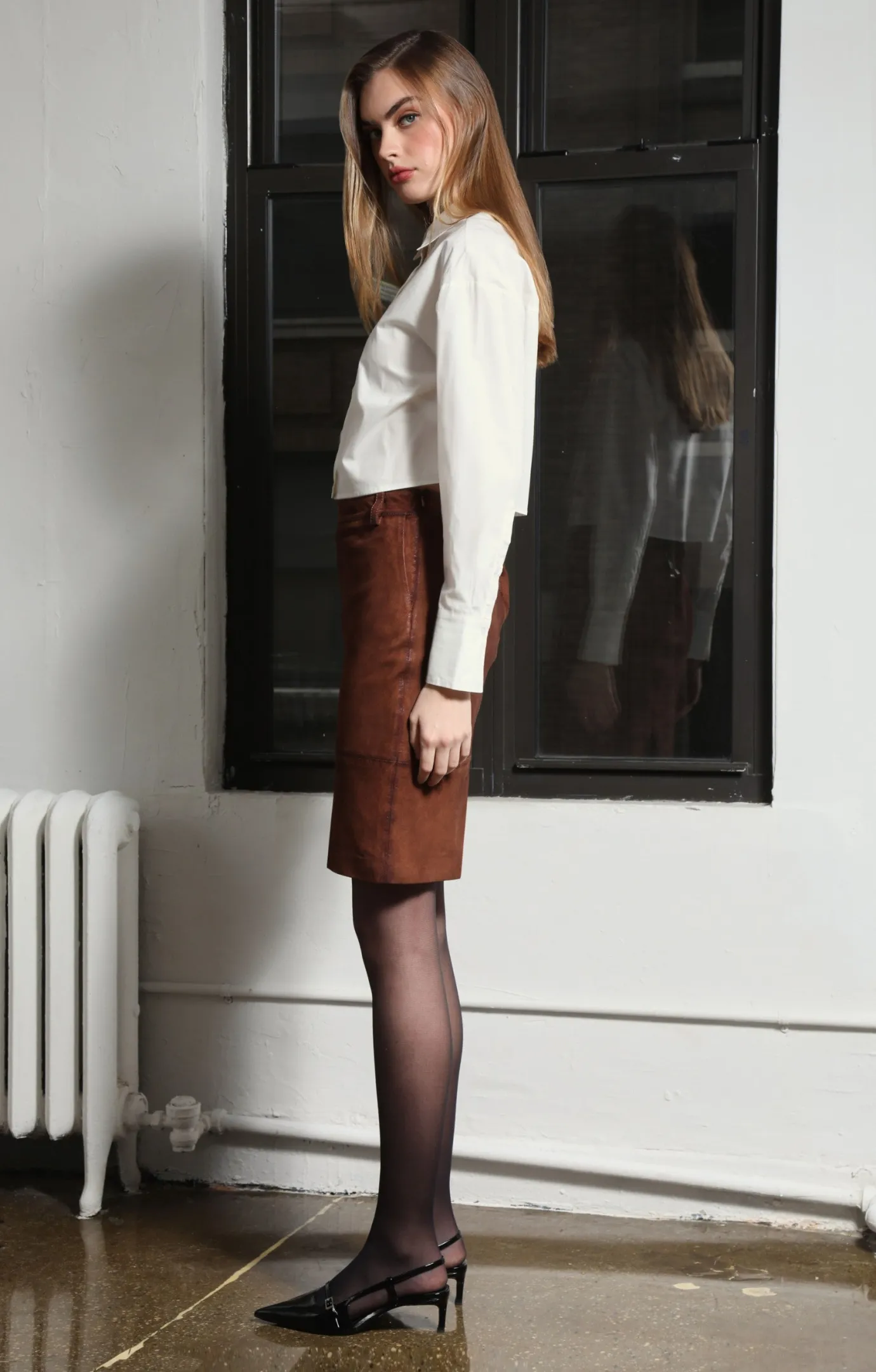The Piper Skirt is a classy above the knee suede skirt with antiqued seam details. Wear with the Palmer Jacket for updated mod inspired look