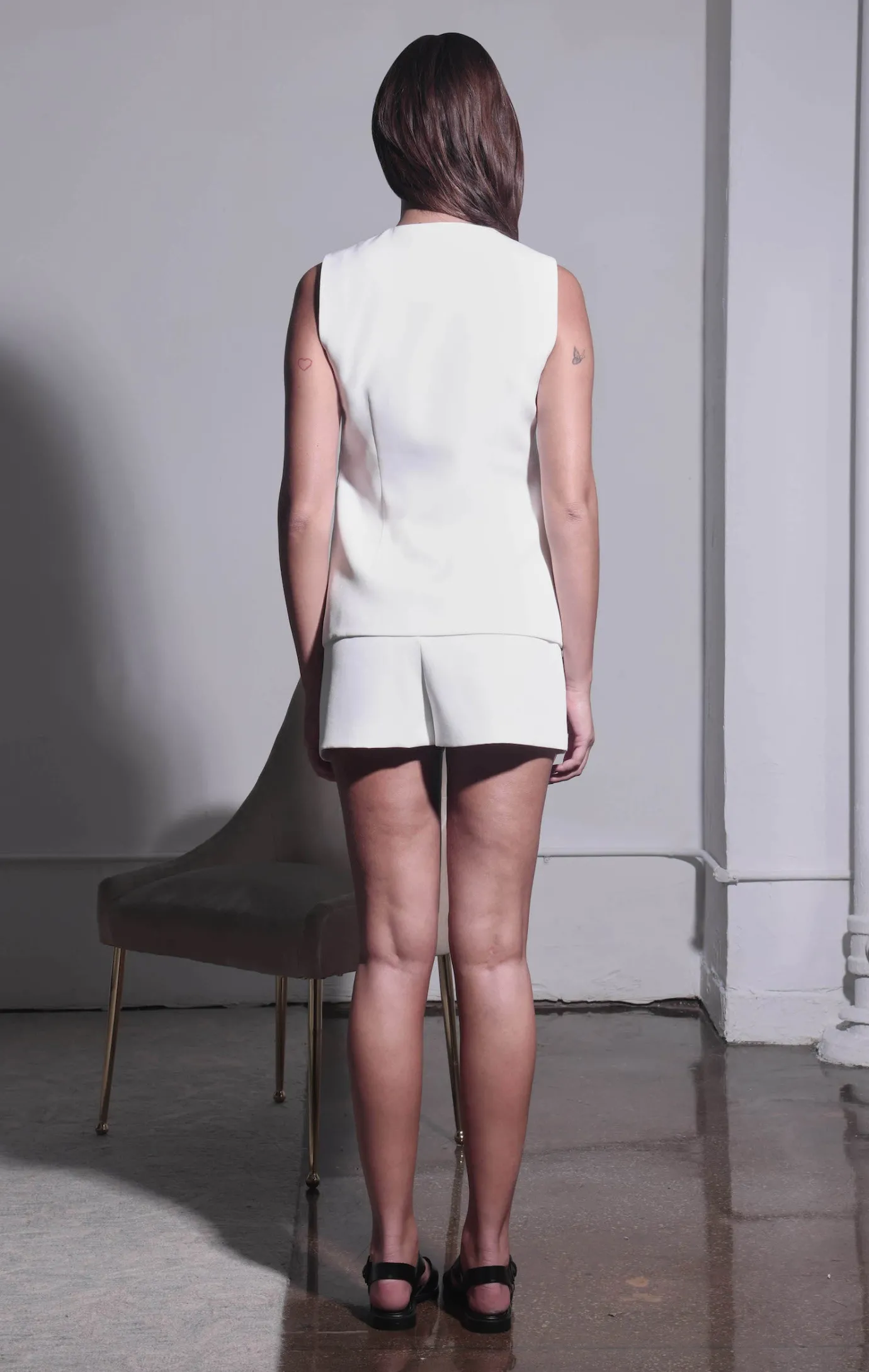 Refresh your vest style with the Starla Vest. This longline style, in our classic suiting, features welt pockets and faux horn buttons