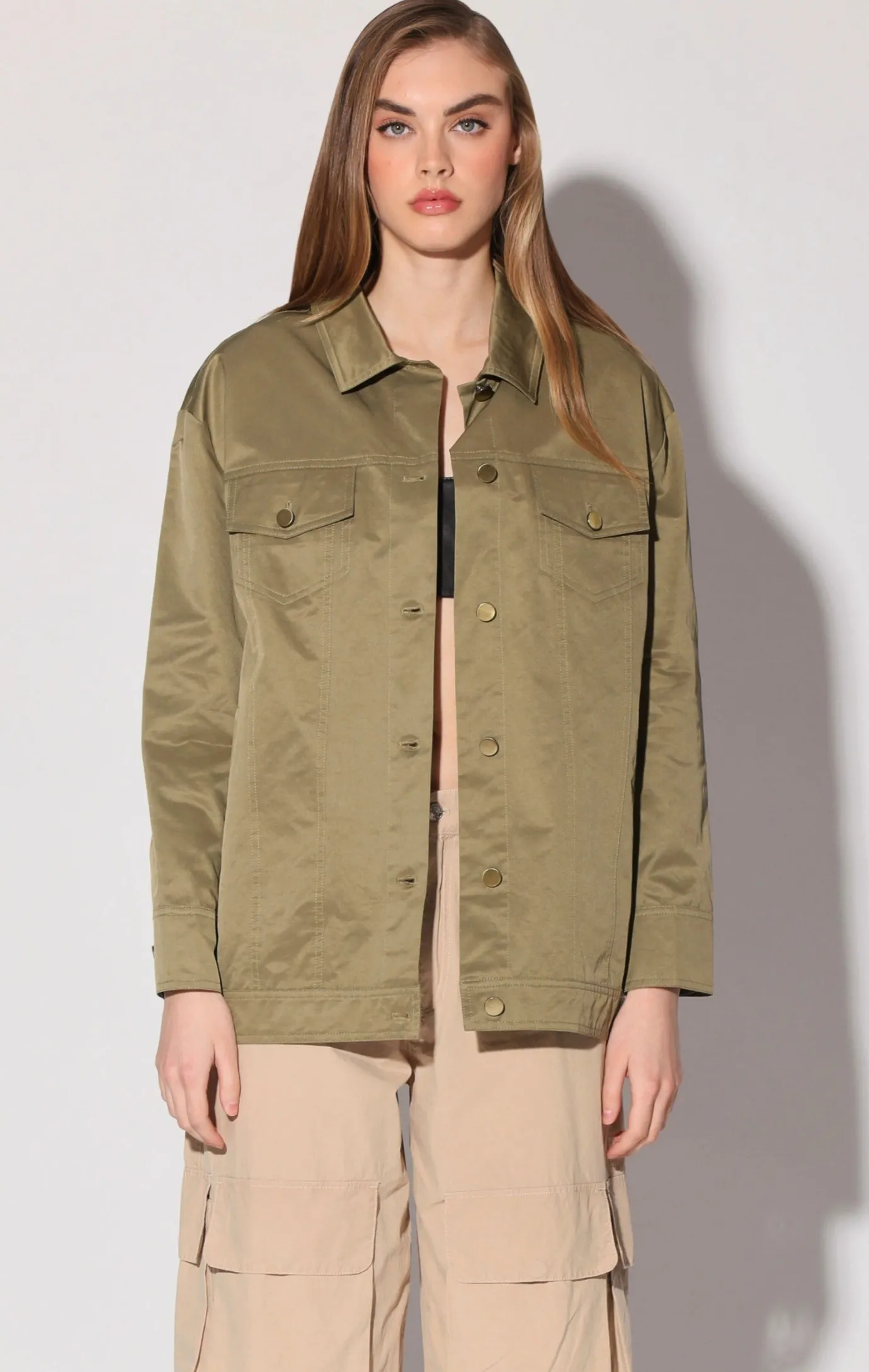With an oversize denim jacket feel in our luxe satin twill, the Sutton Jacket brings a casual cool vibe to any look