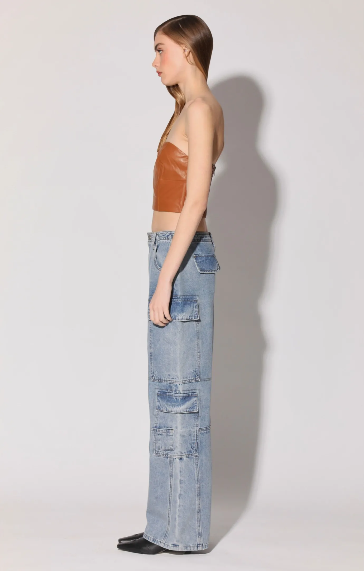 The Tanvi Top is our strapless leather corset with shaping seams for a flattering fit. Style it over a collard shirt, under one of our jackets, or show it off on its own