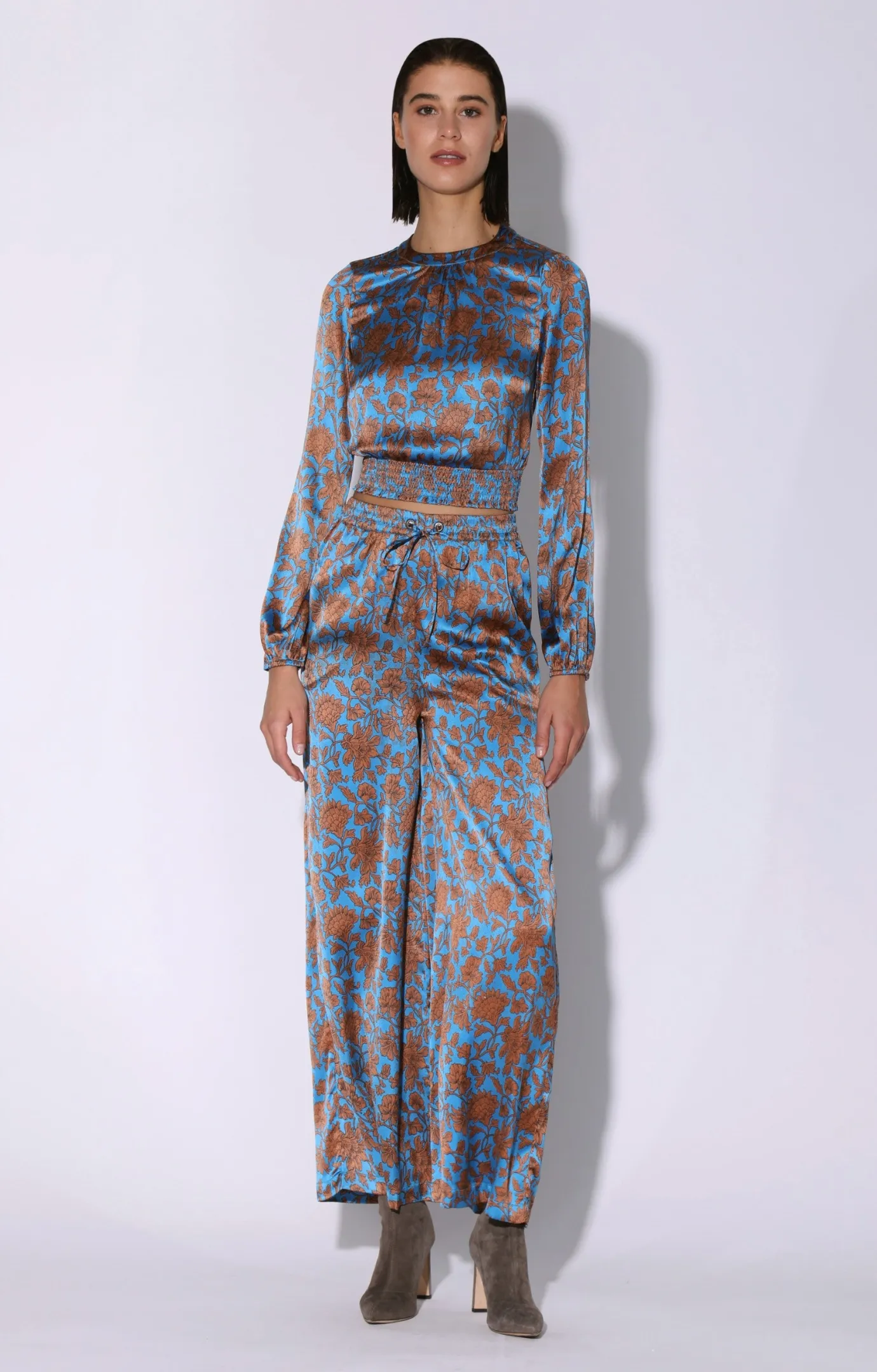 The Abri Top is a beautiful satin print top in an easy billowy silhouette. Pair it with jeans or back to the Wren Pant for a statement set