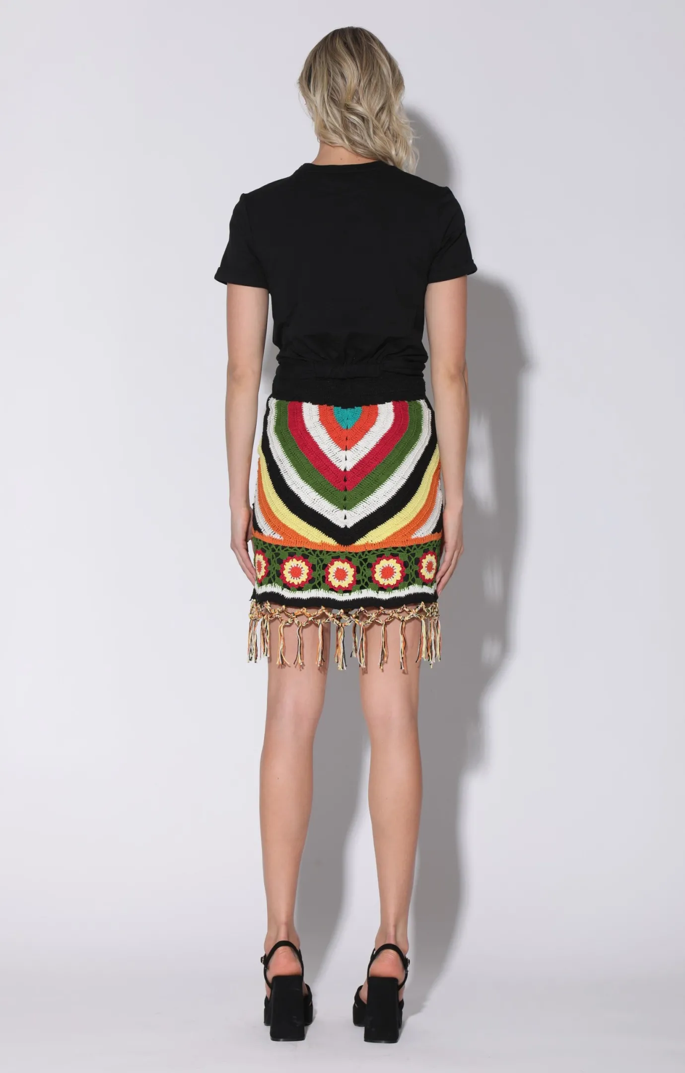 Chic and sexy, the Alaina Skirt is a fitted shape in our luxe and colorful crochet with macrame tassel trim accents