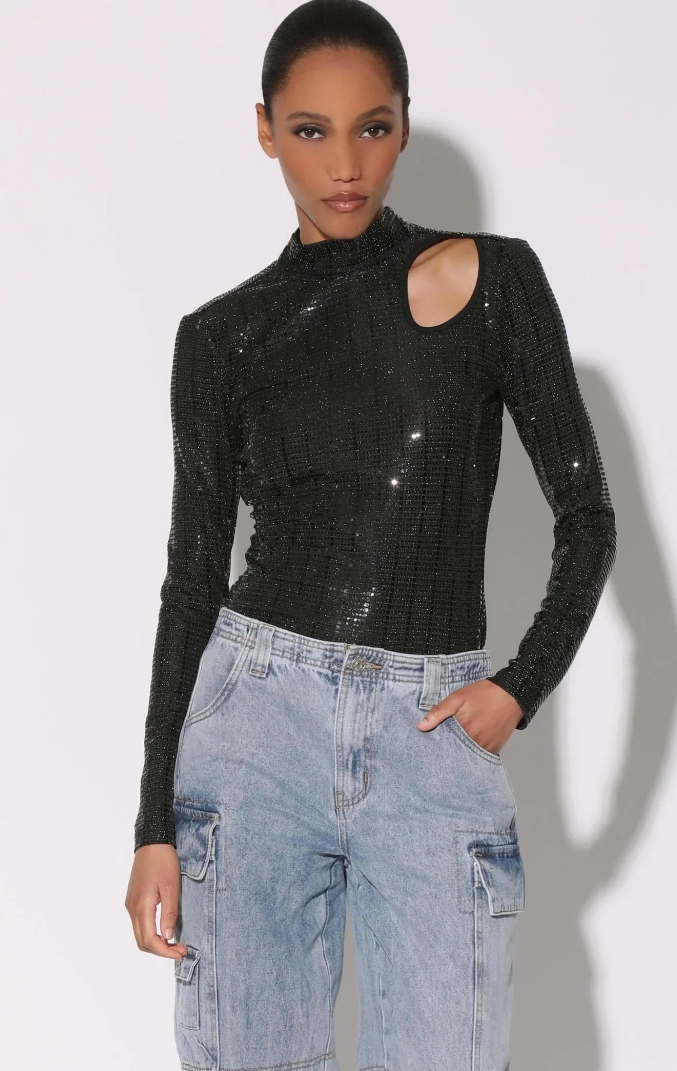 Effortless with an edge, the Estelle Top has a playful asymmetric cut out on the left shoulder. In our eyecatching novelty knit, it looks great with jeans or a sassy skirt.