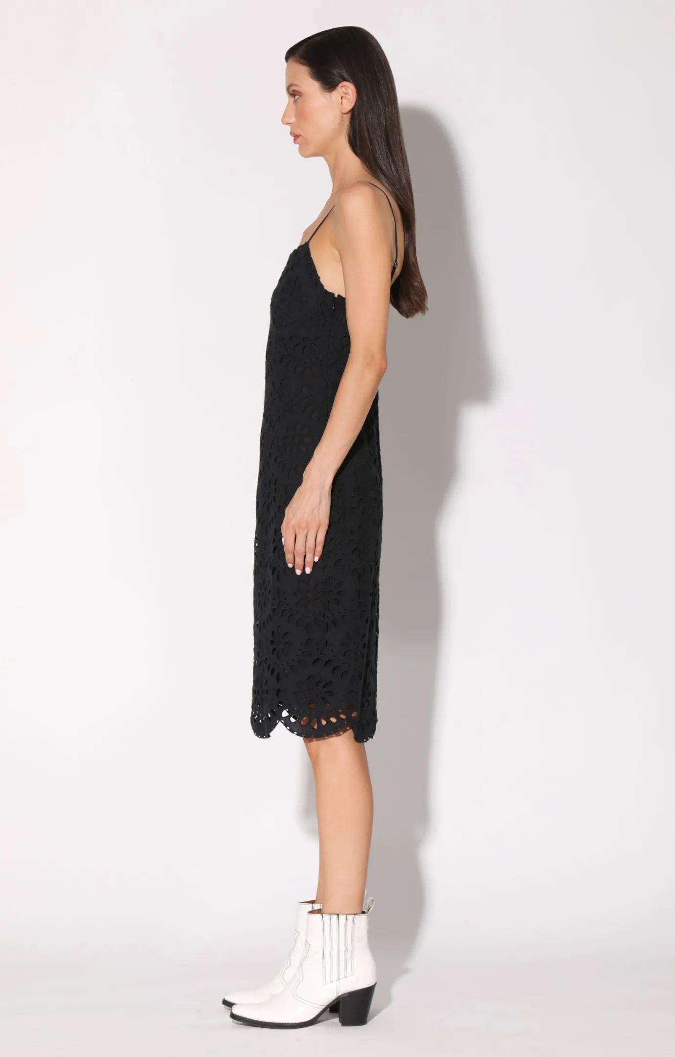 Make an entrance in the Madena Dress! This fitted midi with U trim neckline detail, in our beautiful eyelet fabric, is date night perfection