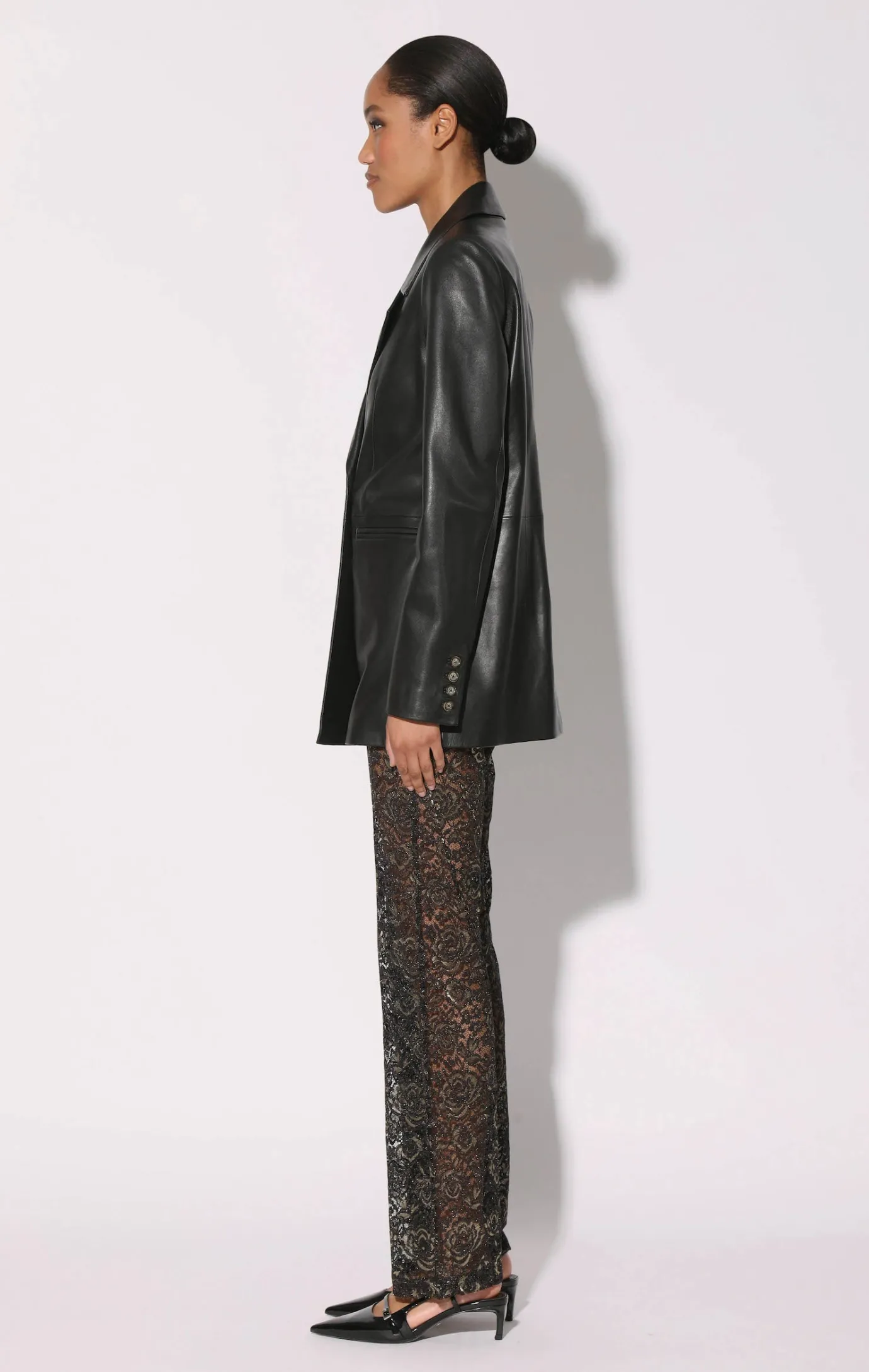 The Misha Blazer is the new power jacket! This longline style with notch collar and relaxed fit in our luxe leather command attention